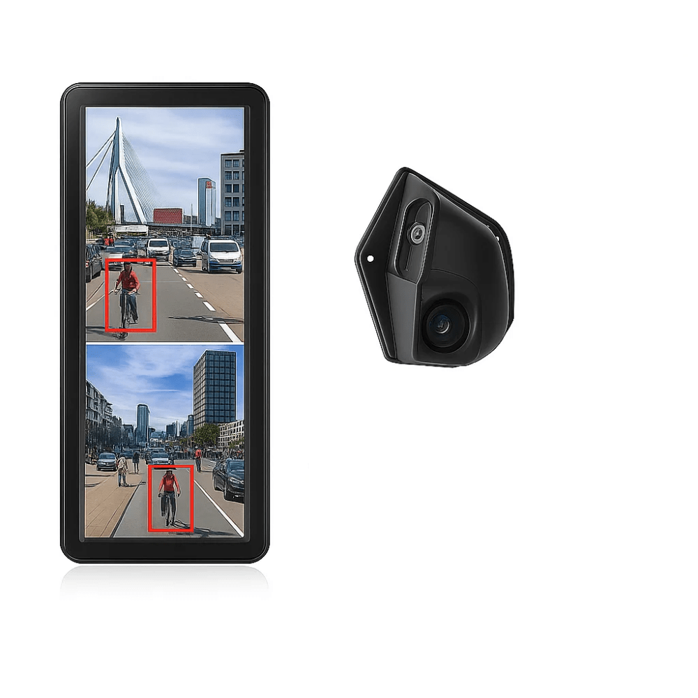 Het VZ-M3-Double Spiegelsysteem vervangt traditionele buitenspiegels door een geavanceerde elektronische spiegelmonitor met dubbele camera’s. Dit systeem is speciaal ontwikkeld voor vrachtwagens, bussen en logistieke voertuigen die behoefte hebben aan betere zichtbaarheid en verhoogde veiligheid.